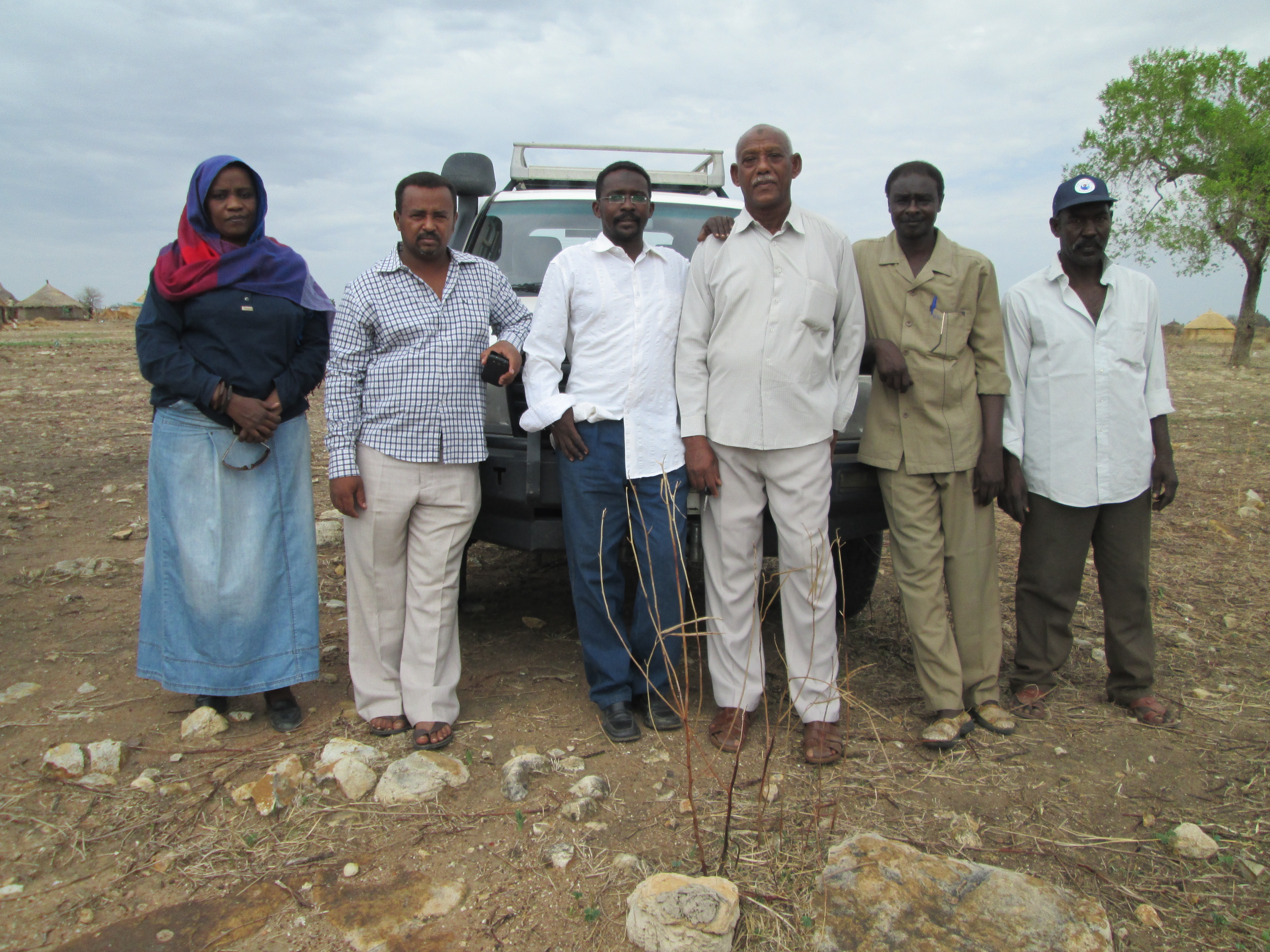 This is the MDA team in Basonda village. Appearing from left to right are Dr. Bilghesa El Khair- National Trachoma Control Program; Hider Mohammed – PHO/NTCP & MDA supervisor, Ali Mosa and Hashim Men Alla – drivers/NTCP; Mahjob Abdalla – local Basonda health officer; local health officer’s driver. The extraordinary dedication and hard work of everyone involved will ensure that Sudan reaches its goal of eliminating blinding trachoma by 2015. Photo by Birgit Bolton for ITI.